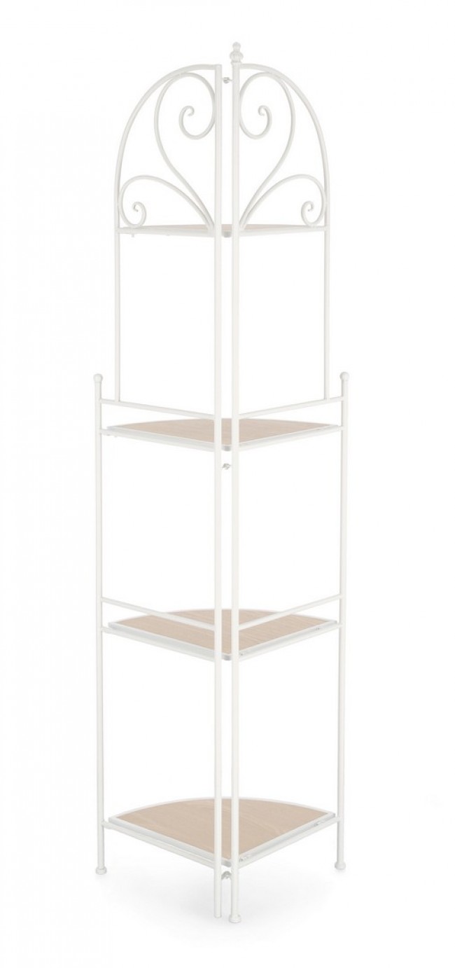 Scopri l’angoliera Guenda 4P in bianco: elegante struttura in acciaio verniciato a polvere ed elementi in MDF, pieghevole e salvaspazio per organizzare con stile ogni angolo della casa.
