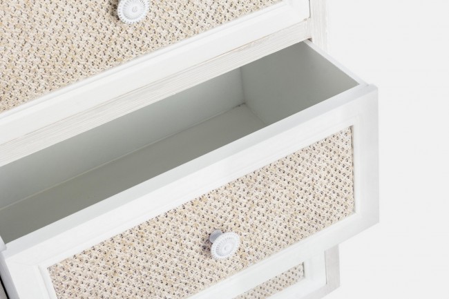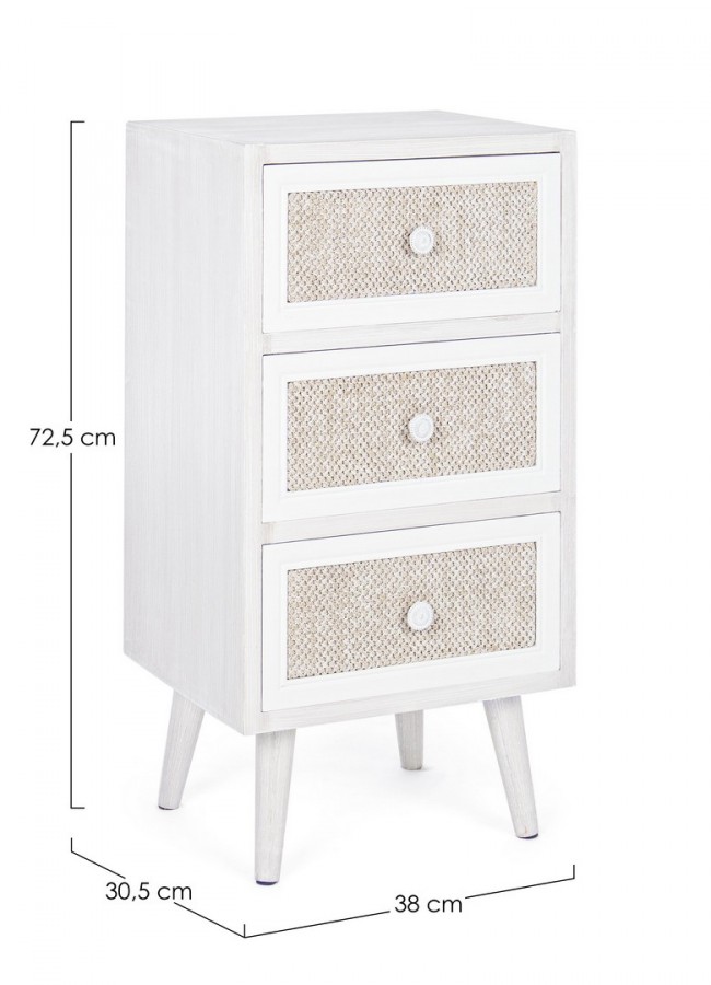 Elegante cassettiera a 3 cassetti con frontali rivestiti in cotone e lino che donano calore e stile al tuo spazio; struttura in MDF con pomelli in metallo e finitura ecologica a base d’acqua. I piedini da assemblare rendono il montaggio semplice e veloce.