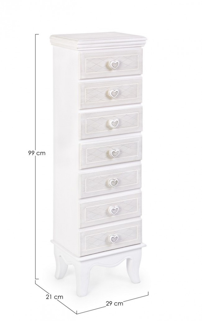 Elegante cassettiera Charlene a 7 cassetti in MDF con finitura a base d’acqua per un look naturale e sostenibile. I pomelli in poliresina aggiungono un tocco di stile e praticità perfetto per ogni ambiente.