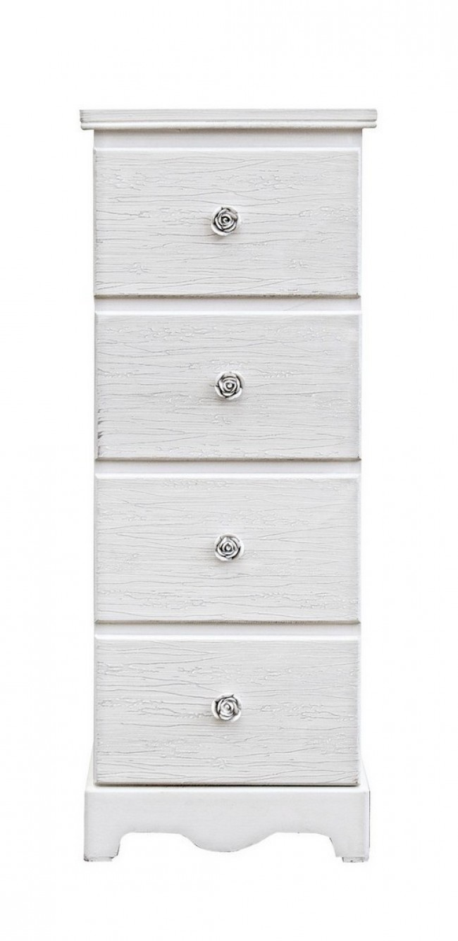 Scopri la cassettiera Blanc 4C S: elegante in MDF con finitura bianca opaca e frontali effetto decapato che donano un fascino vintage, ideale per arricchire con stile ogni ambiente. Le maniglie in poliresina aggiungono un tocco pratico e raffinato.