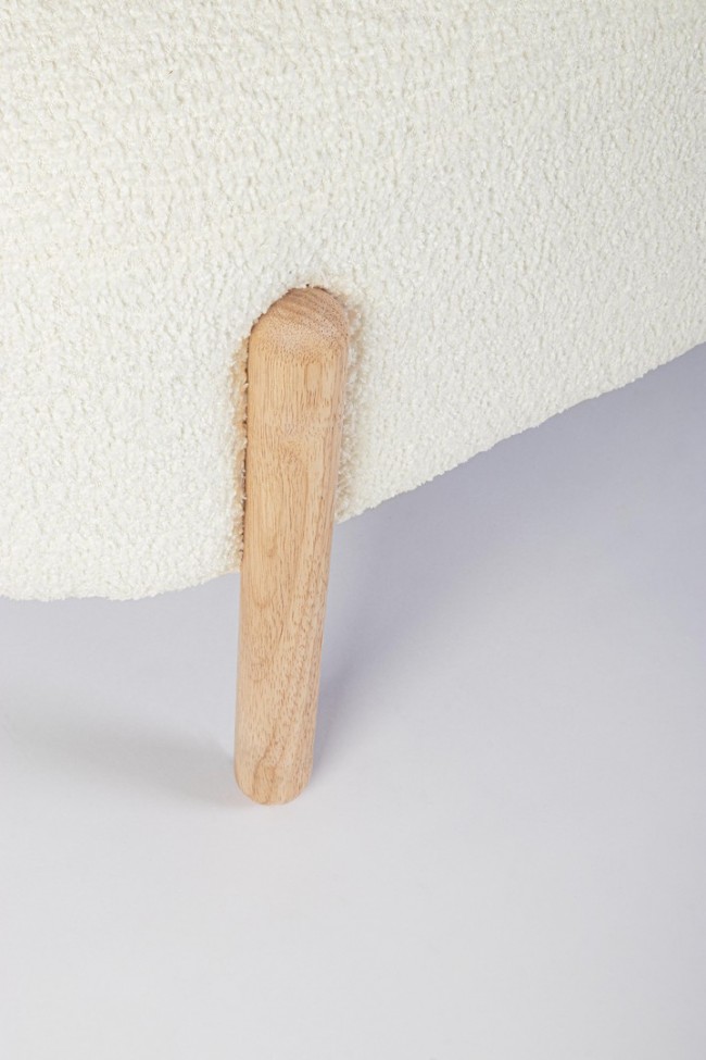 Scopri la panca Dayla: struttura in compensato con gambe in legno rubber wood, seduta imbottita in schiuma e rivestimento effetto bouclé per un tocco morbido e moderno. Facile da assemblare, è l’ideale per dare carattere e comfort a ingresso o zona living.