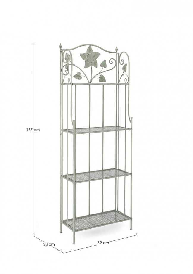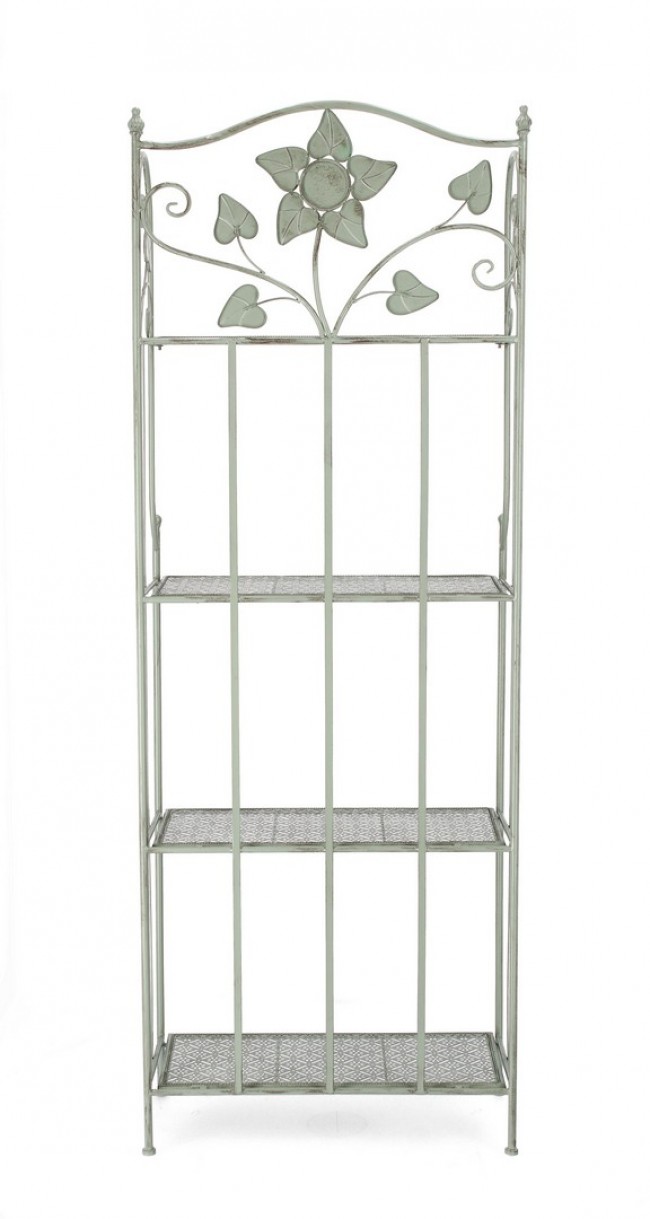 Scaffale pieghevole in acciaio verniciato a polvere epossidica, resistente e leggero, con il delicato colore salvia che dona un tocco fresco e raffinato a ogni spazio.