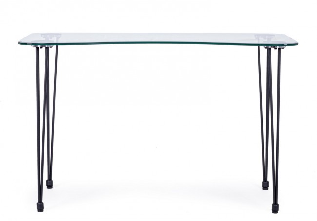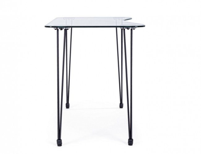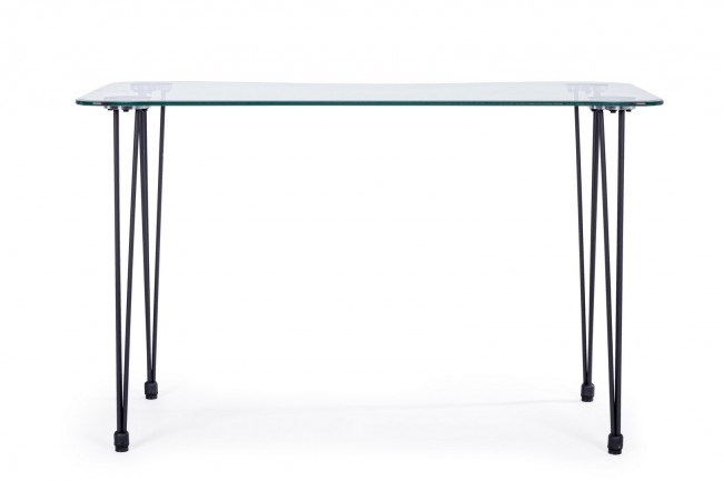 Elegante scrivania Rondo’ di Bizzotto: piano in vetro temperato spesso 10 mm e gambe in acciaio verniciato a polvere per un look moderno e resistente. Facile da montare, perfetta per dare stile e leggerezza al tuo spazio di lavoro.