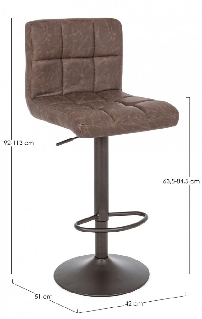 - Materiali / Attributi: Misure: 42a – 51b – 92/113h – 63,5/84,5h1; Materiali: ECOPELLE; Finiture e dettagli: Bar; Note: regolabile