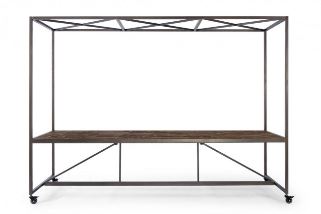 Robusto tavolo espositore in acciaio verniciato a polvere con piano in abete e MDF e ruote in gomma per spostarlo con facilità. Facile da montare, è la soluzione pratica ed elegante per valorizzare i tuoi prodotti.